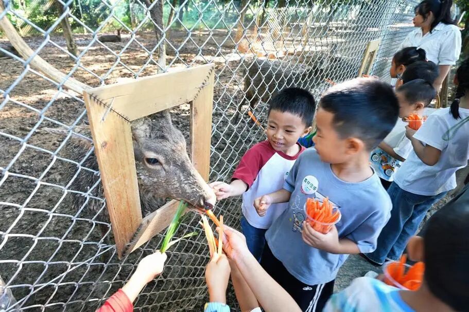 遇见小鹿:在鹿苑里,小鹿慢慢凑近孩子们,孩子递出胡萝卜,小鹿轻轻地舔着。他们的眼睛都亮了,"老师,它好害羞,我也要轻一点。"孩子们学会的,不只是知识,是善良,是理解,是小小的责任感。