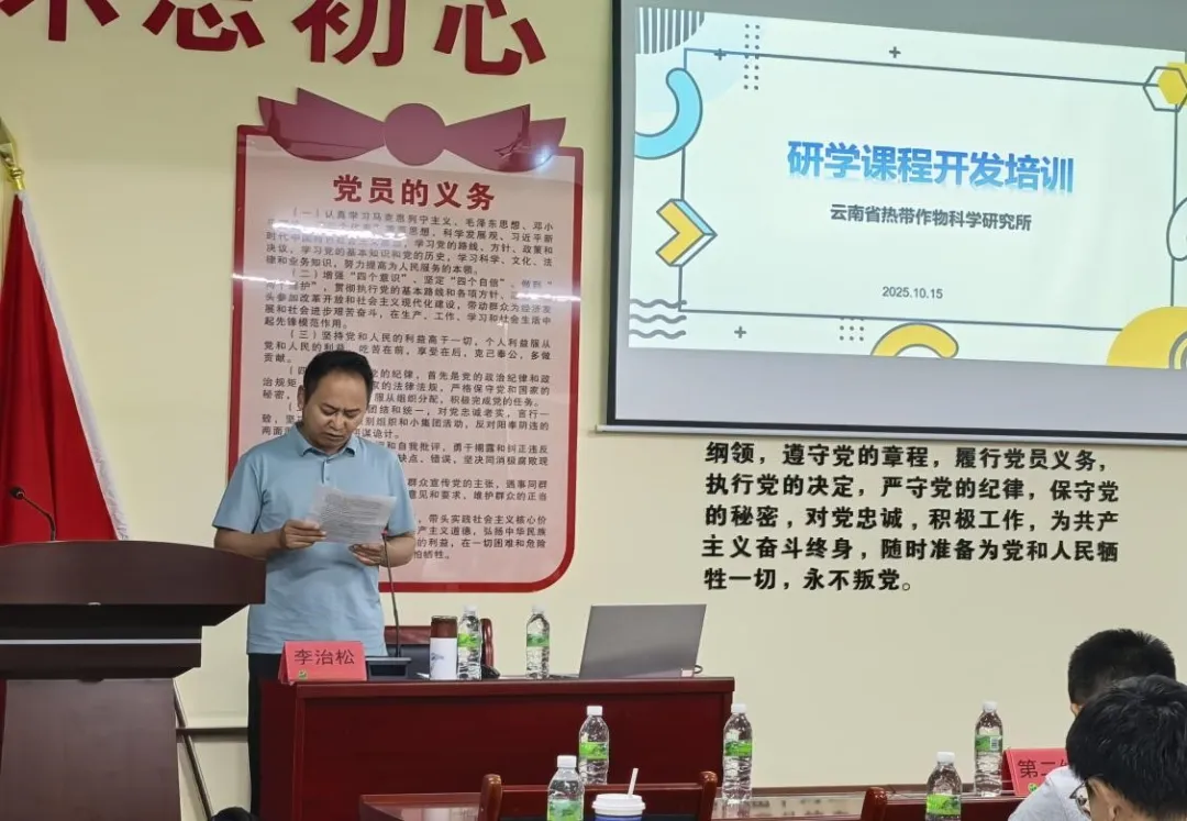 2025年10月15日上午,云南省热带作物科学研究所李治松副所长出席了开班仪式并作动员讲话。他在讲话中系统梳理了我所在热带经济作物研究领域取得的重大成就,包括天然橡胶产业的四次重大科技创新、云南热带北缘高海拔植胶大面积高产稳产栽培技术体系的创建,以及在澳洲坚果、热带水果、牛肝菌等热区生物资源开发利用方面的开创性研究等。